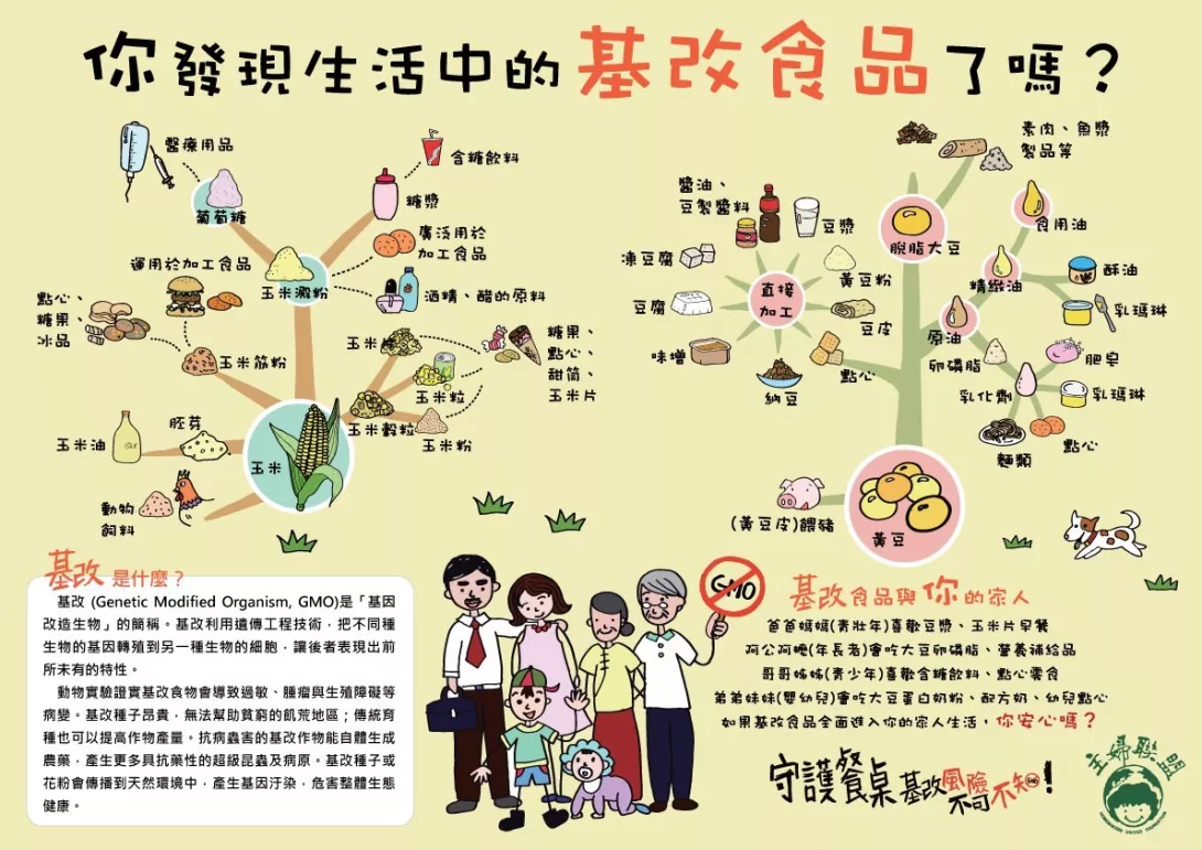 無基改生活並非遙不可及。首先要避開現實生活已經存在基改成分食品。可以參考下圖: