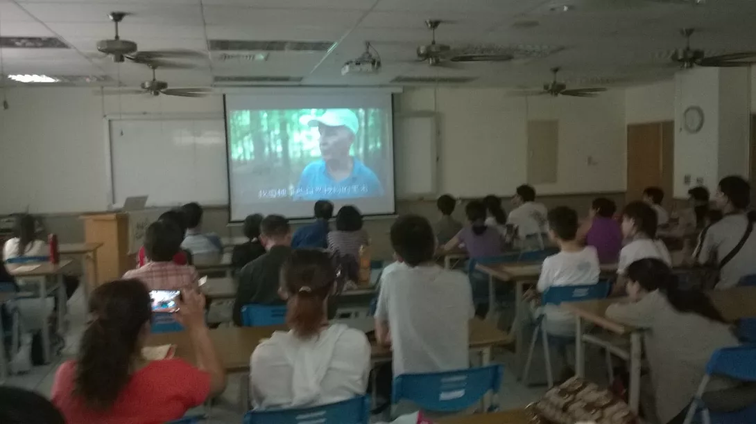 你會發現關心基因改造食品市民朋友佔滿整間教室,聚精會神看紀錄片。(地點:嘉義市再耕園)