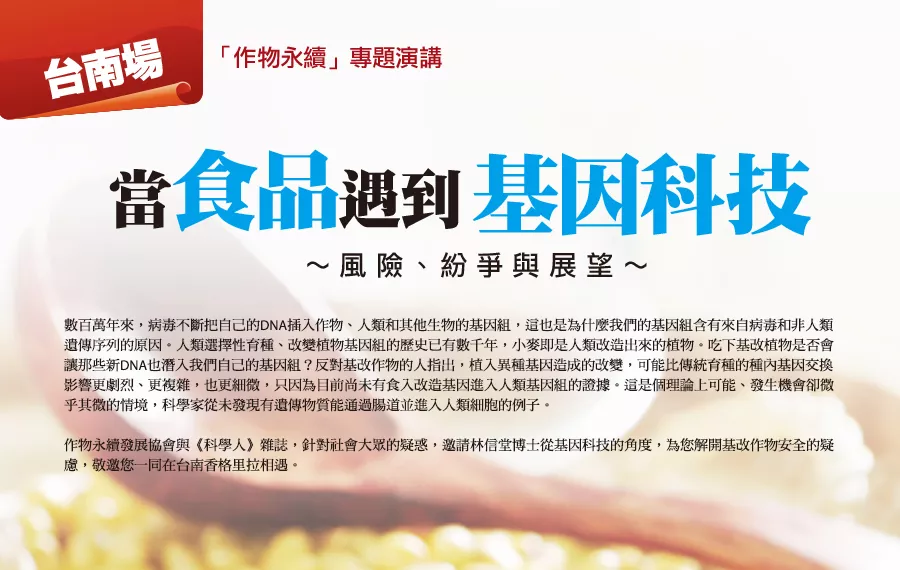 台灣大學農藝所 郭華仁 教授蒞臨嘉義市,與大家暢談基改食安問題。