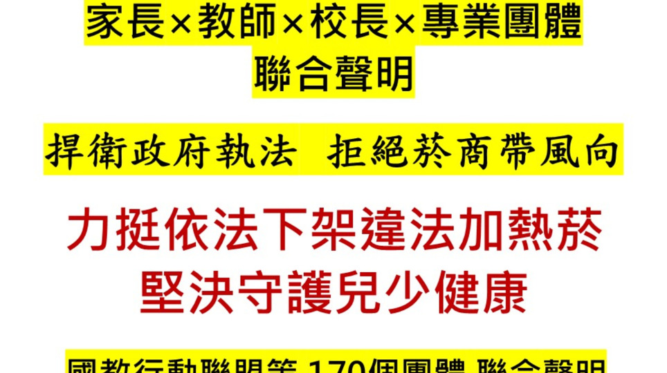 [家長×教師×校長×專業團體聯合聲明]捍衛政府執法,拒絕菸商帶風向! 力挺依法下架違法加熱菸,堅決守護兒少健康!!