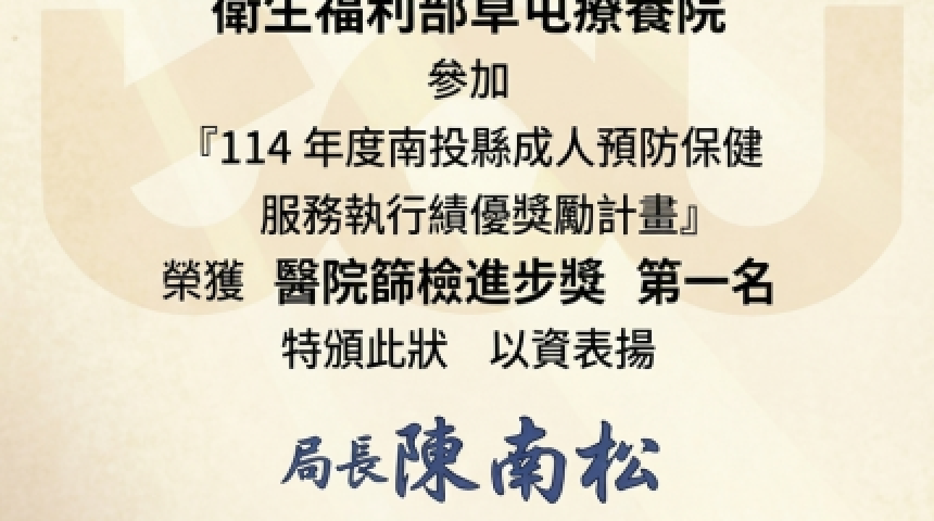 深耕預防保健有成 草屯療養院獲縣府高度肯定