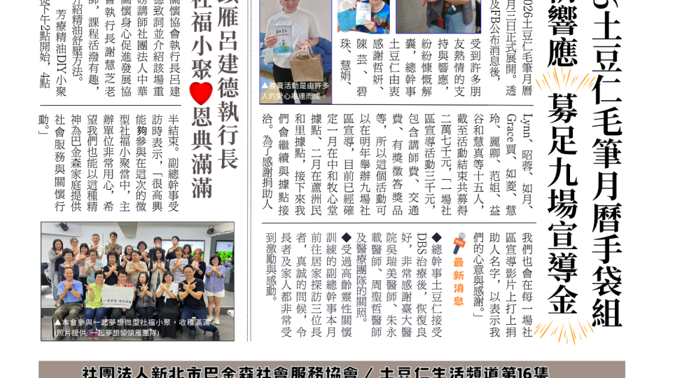 為籌募2026年十二場社區宣導,土豆仁親筆揮毫毛筆月曆