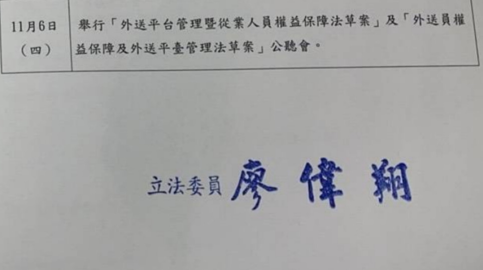 外送專法第四場公聽會11月6日登場 黃國昌:目標年底三讀通過