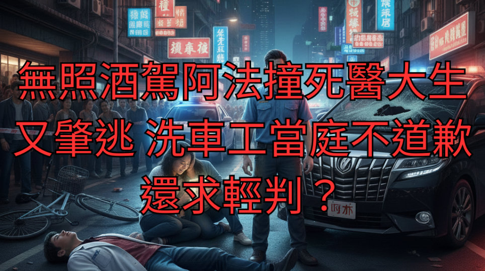 無照酒駕阿法撞死醫大生又肇逃 洗車工當庭不道歉還求輕判?