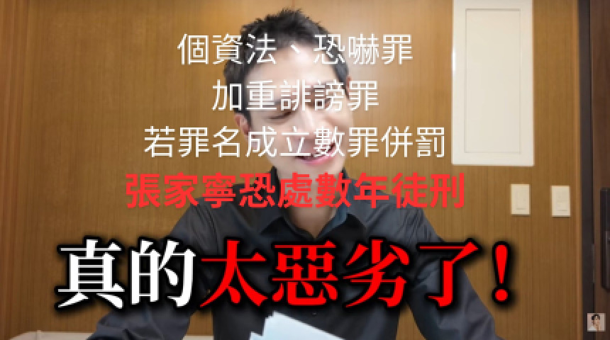 Andy控張家寧涉非法個資蒐集、恐嚇罪、誹謗罪,若罪名成立數罪併罰張家寧恐處數年徒刑