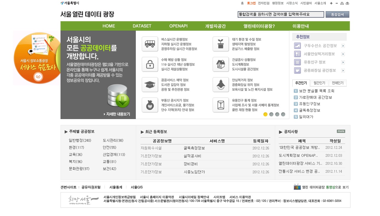 | 韓國首爾開放資料平台介面 |