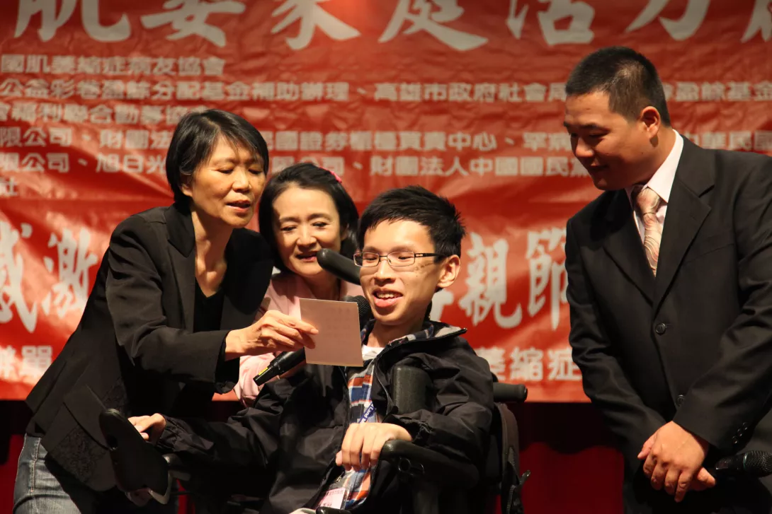 2013.05.04~05母親節前夕中華民國肌萎縮症病友協會於淡水漁人碼頭福容飯店,舉辦『心存感激 永不放棄 母親節感恩晚會』。肌萎協會邀請柔軟機智的譚艾珍小姐主持晚會節目,並特別邀請總統夫人周美青及阿基師蒞臨現場,為身處於逆境中,長期勞心勞力地照顧病友的媽媽們鼓勵、打氣,一同度過生命遇寒仍不失溫、溫馨的母親節夜晚。