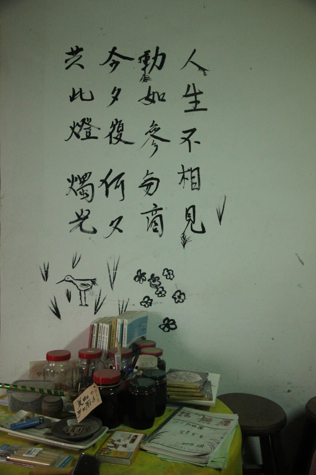 走進花田厝的牆邊,就可以看到花媽親手寫下的字句,「人生不相見,動如參與商;今夕復何夕?共此燈燭光。」也給旅客更給自己,看著字句,同時看見花媽努力讓更多都市人去喜愛土地,一起享受她曾經半農半X的人生體驗。