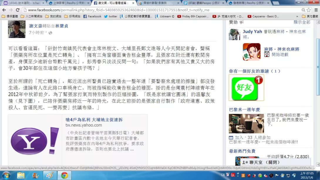嗆4戶為私利 大埔地主促速拆 中央社 – 2013年7月5日 下午5:27