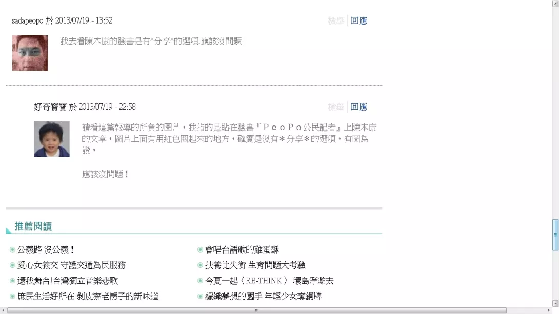 好奇寶寶信箱來了報導的回應,說我提到陳本康的報導有*分享*的選項,為何我說沒有?