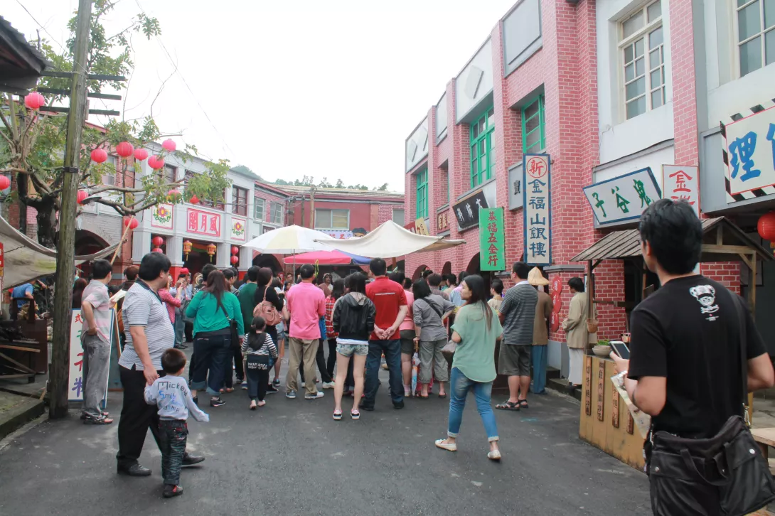 影城場景主要設計一個仿台灣初期的小鎮,以仿閩南式建築、紅磚街屋、圓拱造型的通廊和日據時期的巴洛克式建築,像是古早商店街、眷村、菜市場和市集、廣場以及各種鄉土電視劇需要的拍片場景,影城帶領我們走入時空隧道,走進懷舊復古的年代裏,彷彿置身在真實與虛幻之中。