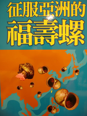 而來自非洲的非洲大蝸牛,體積更為龐大,食量更為驚人,也是農民的眼中釘。台灣政府為了撲滅非洲大蝸牛,曾引進美國的玫瑰蝸牛來一物剋一物。玫瑰蝸牛除了有粉紅色的外殼,也以喜愛捕殺它種蝸牛而聞名。不料這兩種殺手級的蝸牛井水不犯河水,讓台灣人傷透腦筋。奇妙的是,非洲大蝸牛在一九七○到一九八○年代,已經不再是農民的威脅,因為台灣人發現,非洲大蝸牛肉質鮮美,非常可口,於是一盤又一盤的炒螺肉出現在熱炒店,非洲大蝸牛也就不再囂張了。這些故事不但有趣,也有助於來看展的朋友認識大自然,認識台灣。