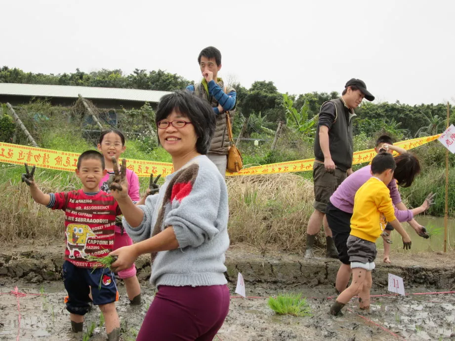 「大家種好米 一起吃健康」,年初我本想培養6個生產型人才就好,要不然自己在家裡多吃一口飯就好,神明對我有特別安排,高度的親子參與率遠遠超過我的目標,四月鼓勵親子到貢寮水梯田和老農下田,認識里山生態和水梯田對水資源保育的重要性。