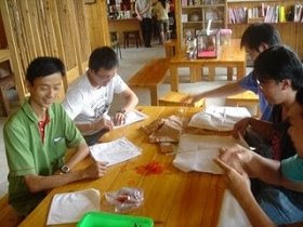 活動中安排了手工藝DIY「植物染布」,用「薯榔」,一種塊莖植物當原料,和橡皮筋和彈珠等簡單工具,來做出不同的圖案,設計屬於自己風格的染布。另外,活動還包括了參觀坑子社區的著名景點:土角厝與木炭窯。利用就地取材的概念建造而成的土角厝,和木炭窯一樣,是近幾年新建的;「阿公木炭窯」用土沿著坡建造,用相思樹木燒成木炭,是七個阿公為了留住傳統聯手建造而成。
