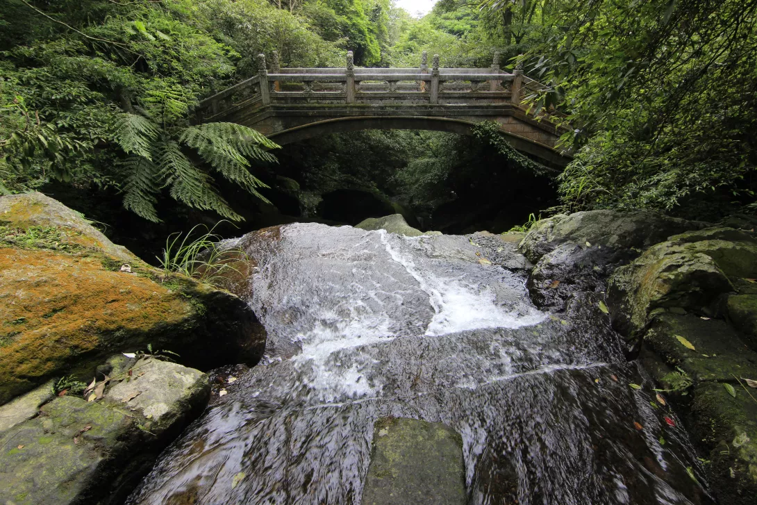 鐵橋上可觀賞瀑布上層以及回望流水穿越石橋