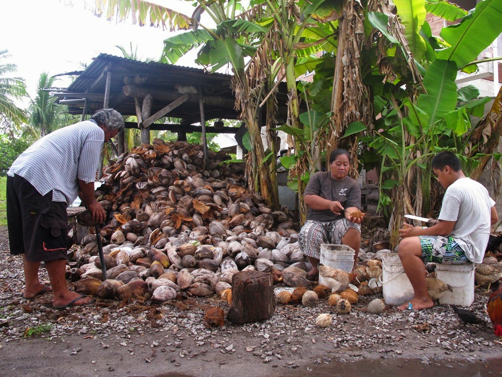 | 圖:吐瓦魯成堆的椰子殼,可以作為生質燃料的來源。(作者攝) |