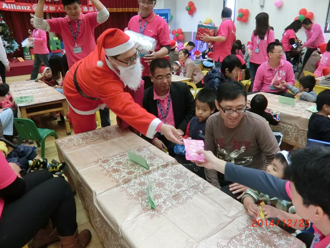 在聖誕節當天,安聯人壽瀚鼎通訊處陳雅華處經理帶領近60位同仁到家扶台中發展學園要與這群慢飛天使們一起共享聖誕大餐歡度聖誕節。陳經理不僅捐贈聖誕紅包予發展學園,更帶領一群富有愛心的聖誕老公公發送聖誕禮與聖誕卡片給每位慢飛天使們,期盼他們有個美好的聖誕節。