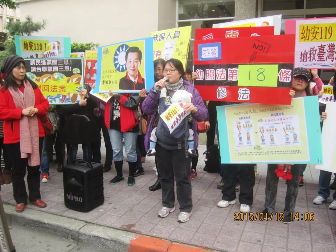 幼保幼教學界聯盟等 幼安119!搶救臺灣幼教!記者20150119:http://youtu.be/WBCqjfPcn8o(YouTube公益新聞頻道.完整影音報導)
