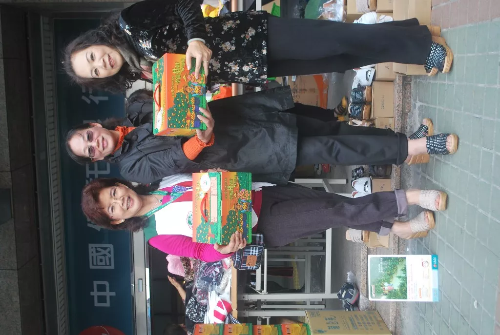 斗六市長謝淑亞感謝臺旺食品董事長夫人陳慧芳買下全數茂谷柑,特別再推薦室內鞋。