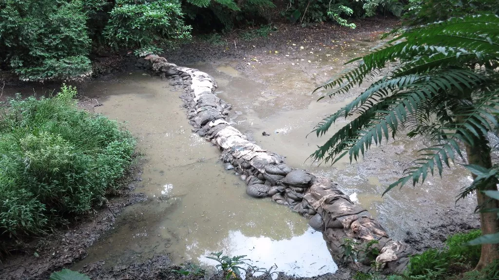 在今日完成土堤後,志工們還要每日來巡護土堤,並於7月18及25日以兩天的 時間移除外來種,再於8月10日前持續挖填底泥土包袋,藉由底泥的擾動來增加含氧量,移除底泥中躲藏的外來種,而移動的部份底泥也將營造成為螢火蟲復育的棲地。