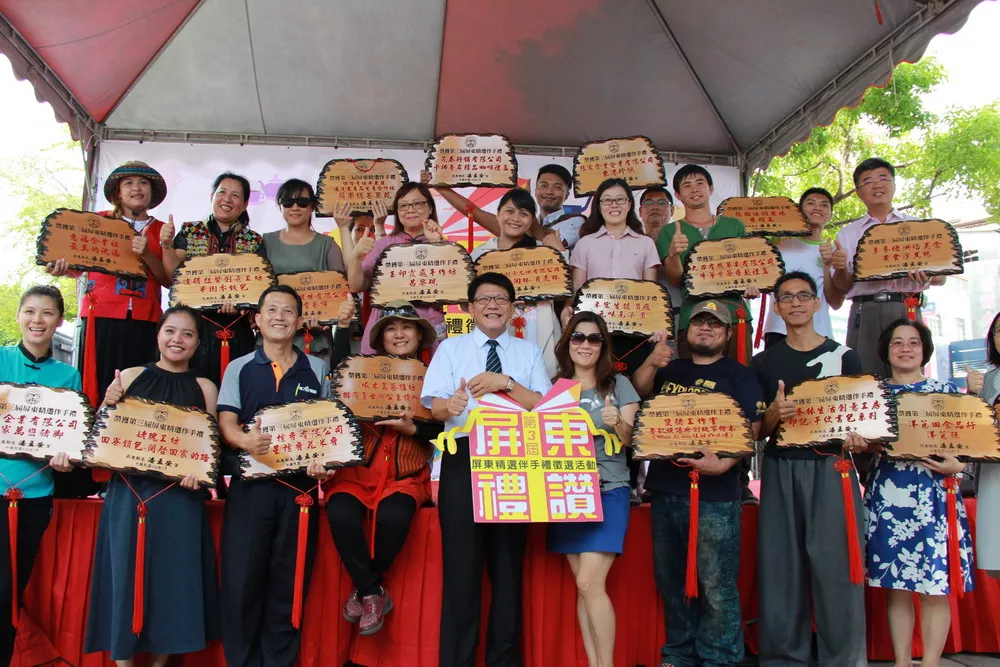 由屏東縣政府主辦的第三屆屏東精選伴手禮,經過為期3個月的評選和票選,從130件報名商品中選出最終十大伴手禮。其中食品組10件:大力有機草本有限公司(牛蒡煎茶香鬆禮盒)、六堆釀興業有限公司(竹田驛客好食組)、禾宏生技酒廠(元味高梁酒)、多麥綠烘焙美食(黃金沙其瑪)、茂泰行銷有限公司(卡彿魯岸精品咖啡禮盒)、洋蔥田食品行(洋蔥酥)、保證責任屏東縣優質農產品生產合作社(蘋果檨芒果乾)、張家食堂企業有限公司(東港珍饌)、熊家企業有限公司(熊家萬巒豬腳)、鶉園休閒農場(香檳鳥)。 工藝組5件:玉印霞飛手作坊(昌黎硯)、姥瑰工坊(回寮鎖包-開啟回家的路)、惠福企業社(最美的祝福)、蜻蜓雅築(食在有藝飾)、達得拉繁創意工坊(半圓零錢包)。創意生活組5件:七星檀香有限公司(七星檀香花米香)、原感物件創意文化有限公司(有感生活陶杯-月亮杯)、啄木鳥藝雕坊(排灣勇士與公主情人對章)、彭春林生活創意工房(印記-手紋書包系列)、雙豬工作室(魯凱族語原創故事繪本)。