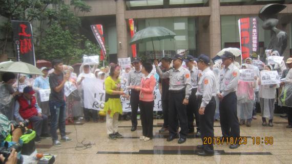 下圖:勞動部派員出面接受陳情書並請15位代表入部協調(記者詹招琳/臺北市攝影/10410/)