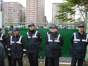 只有基層員警站在外面,長官們躲在裡面有說有笑