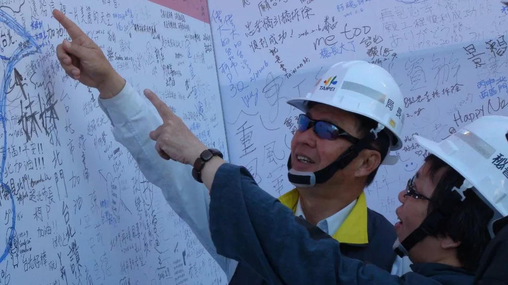 20160209台北市長柯文哲視察忠孝橋引道拆除進度 進入工地請戴安全帽