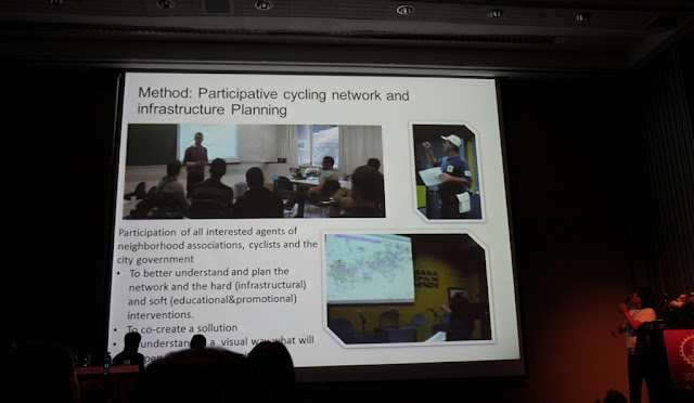 議程中分享的另一個例子,是在巴西,里約熱內盧最先鋪設單車道的區域,是在收入較高的濱海的主幹道與高級社區與鬧區鋪設,但當時出現許多設計上的盲點,因而被媒體大舉嘲諷攻擊。隨著市政府擴大設置單車道,市府的單車顧問 Annie Facó 與大學團隊一起進到里約北部的 Maré,邀請當地居民參與式設計,並推廣單車通勤。Maré是擁有14萬居民的大型貧民社區,房屋窳陋且密集,市府在當地劃設22公里長的單車道,塗上藍色,與倫敦單車快速道路的識別顏色相同,讓居民意識到這是重要的市政設施。然而礙於社區道路狹小,單車道實際上須與汽車共用,也仍有路障、路邊停車等不盡完美之處。然而由居民提出需求與使用情境,納入設計中,已經減少許多政策衝突。