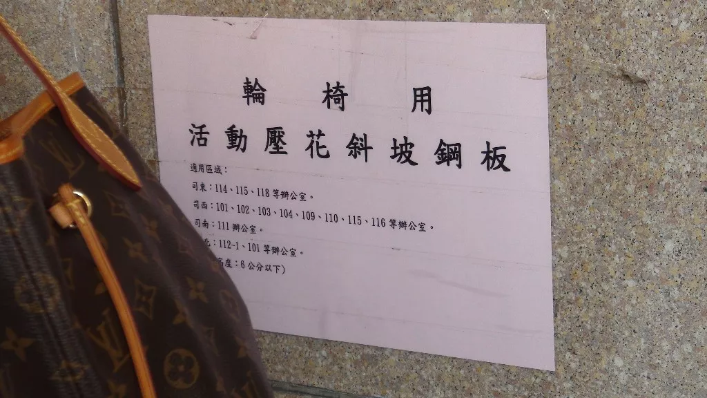 司法院應落實司法院廣場前對殘障人士協助的標語[身心障礙訪客如需專人協助請按服務鈴]