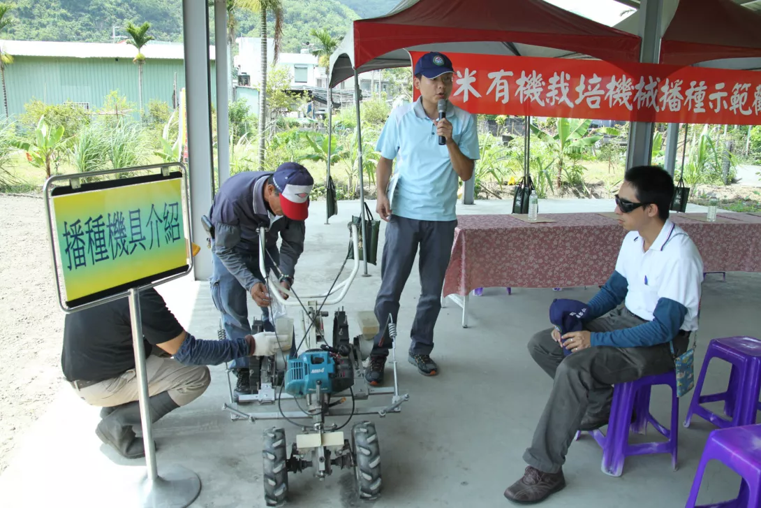 透過觀摩會講解小米有機栽培技術以及本場研製之小米機械播種機,並進行實地操作,提供農友參考應用,現場農民反應熱烈。 陳昱初副場長表示,臺東縣為小米的主要產區,其田間栽培管理多以人工為主,臺東場歷年改良、研發適用小米耕種的農機具,從播種、中耕、採收至初級加工,皆已具有相當成果。