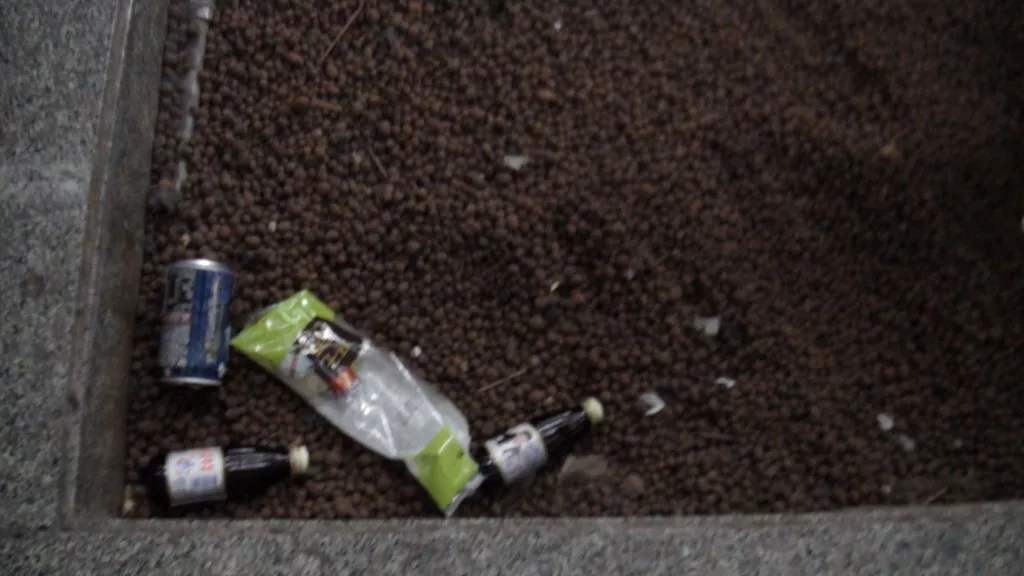 電扶梯前方的燈柱影響通行且有安全的顧慮,電扶梯下的垃圾以及通道烏黑的窗台。