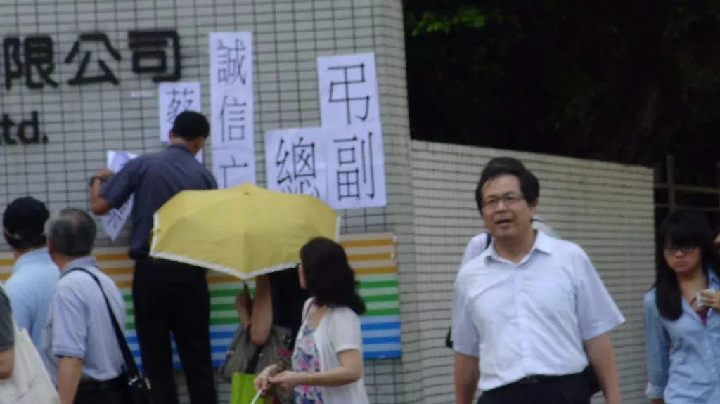 2016年08月04日有股東在中華電信門口弔念曾身亡的副總,馬上被中華電信公共事務處長,命令保全人員將其撕毀,說有損中華電信形象?