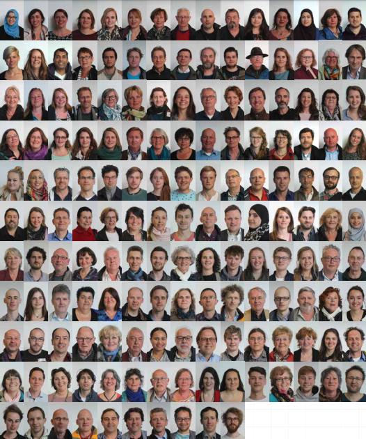 | 圖:能源計畫簡報的後方,列出這次165位參與能源城市對話的烏特列支居民頭像。 |