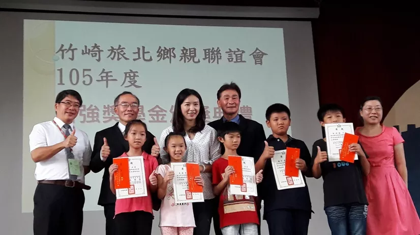竹崎旅北鄉親聯誼會16日上午,在林宜信會長帶領下,於竹崎高中體育館頒發106年度自強獎助學金。