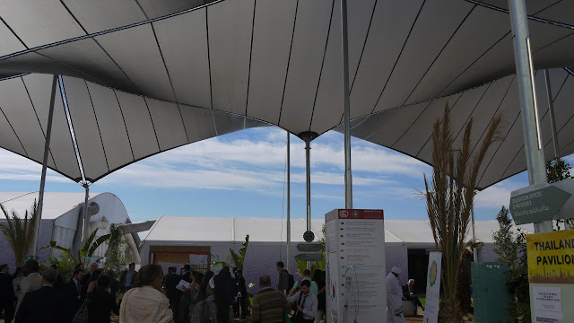 每年舉辦 COP 的會場都很佔據土地空間,因為除了須設置一間間的會議室、周邊會議、及攤位擺放場地外,還有很大一部分得配置給國家博覽館。這些國家館主要有幾個功能:讓談判代表休息、供各國各自舉行發表活動、讓其他參與者見識該國的「綠能實力」及「氣候倡議」。