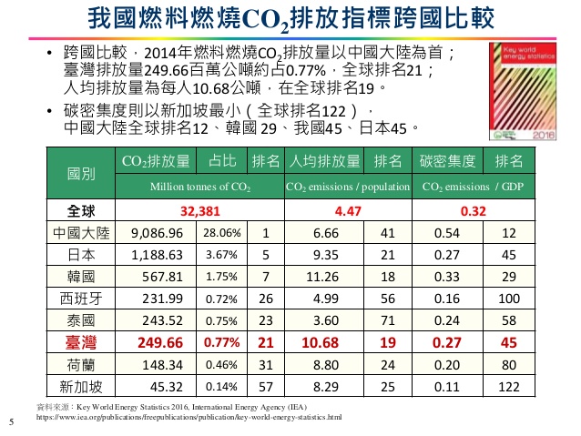 | 圖:台灣雖小,人均排碳量卻在世界上名列前茅。(資料來源:環保署) |