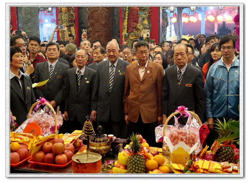 台北市長柯文哲大年初一(1/28)晚間前往松山奉天宮參拜、點燈。