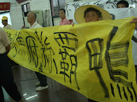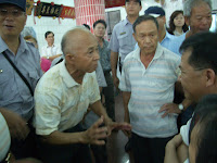 台北大學副教授廖本全趕到現場聲援,他對著苗栗縣工商發展處副處長黃智群說,「縣府有聽到民眾聲音嗎?縣府做事實在太野蠻了。」