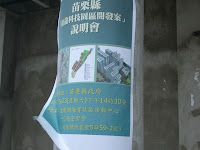 4月10日苗栗縣政府也在後龍鎮公所舉辦一場說明會,當天有一份22頁的簡報資料,名稱是「後龍科技園區開發『計畫』政策說明」。23日的說明會名稱卻變成「後龍科技園區『開發案』說明會」。