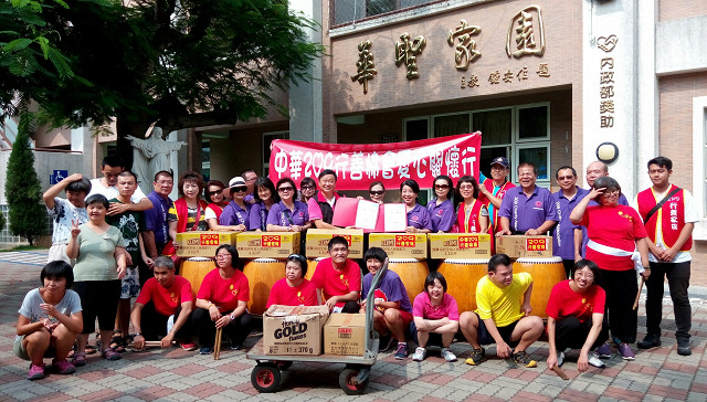 華聖啟能發展中心主任劉振旺表示,華聖有56位憨兒,很感謝遠道而來的中華209行善協會志工們的關懷,本家特以太鼓表演,獻給辛苦的慈善209愛心志工;尤其部分一級貧寒憨兒有骨質疏鬆症,中華209行善協會是第1個捐贈克寧高鈣營養配方奶粉給本家(廠商建議價700),僅代表中心向各位深深致謝與感恩。