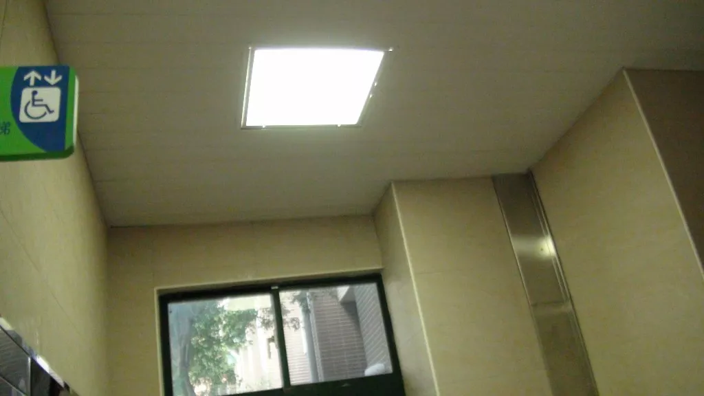 五號出口處的收費機上有感應式的照明燈,人一接近走道就閃出刺眼的亮光,而走道樓梯間頂上也有兩組日光燈座,