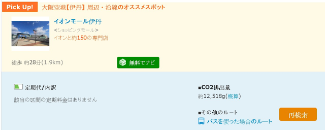 筆者隨意以「東京迪士尼」為起點、「大阪關西機場」為終點查詢,發現搭乘「飛機」的交通路徑排碳量為44,572克,不搭飛機的話只有12,372克的路徑,兩者相差約3.6倍,大致符合一般人對交通工具排碳量的認知。