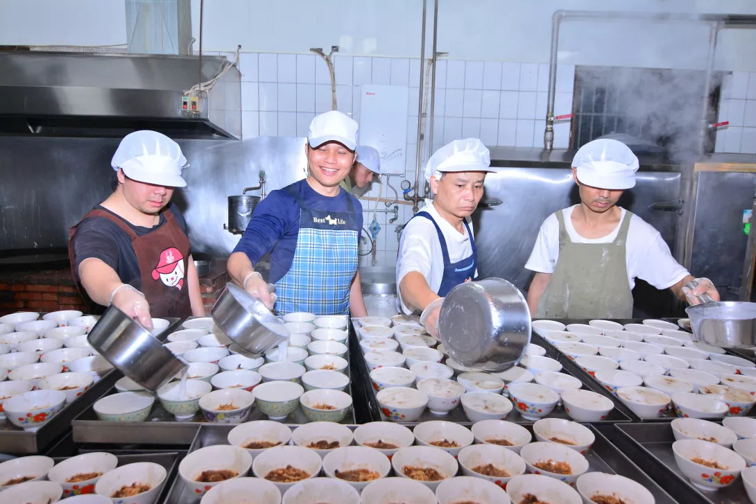 經踏入中央廚房採訪,深深感受到他們的用心與辛苦,早班由早上6點工作到中午12點;晚班由下午10點工作到凌晨2點,雖然時間不是很長,但是他們要在悶熱的環境內,跟時間與品質競爭,每天要生產碗粿、筒仔米糕各約1,500~2,500個的成品,供10個分店銷售,還是要有相當的體力與毅力的,這些產業界的尖兵,實在值得社會大眾為他們加油與打氣。