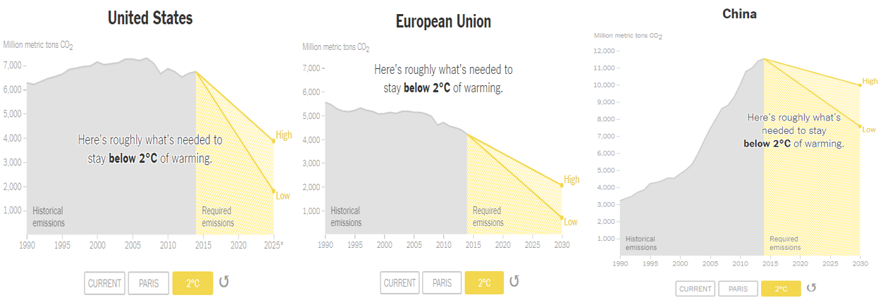 | 要控制全球升溫幅度不超過攝氏2度,各國減碳力道仍須加強。 (圖片來源:紐約時報) |