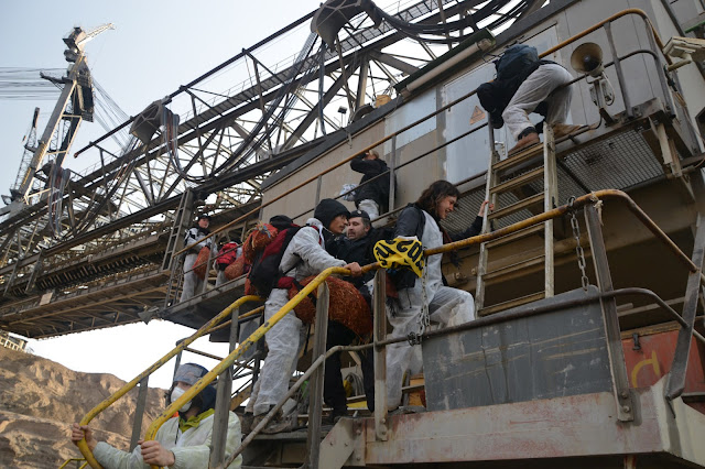抗議人士爬上機具,展開非法佔領行動。圖片來源:Line Skov/Ende Gelände(CC BY-NC-SA 2.0) |