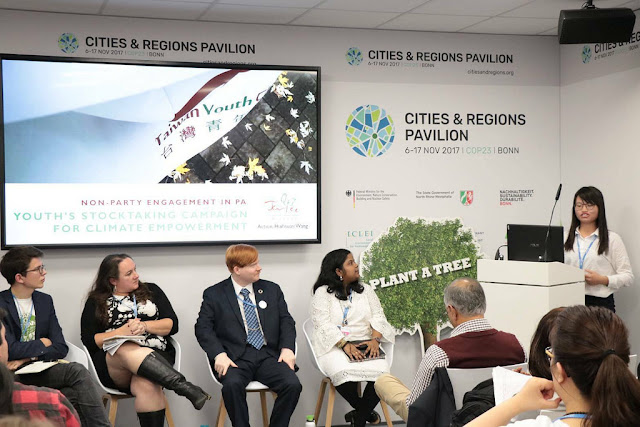 聯合國氣候變化綱要公約締約國大會於11月6日在德國波昂展開,台灣青年氣候聯盟(TWYCC)有7位青年代表進入談判現場,TWYCC於隔日下午,在會場與他國非政府組織共同舉辦「邊會」,於正式會議外聚焦議題討論、增進資訊與技術交換,探討巴黎協定執行方案的跨世代對話。
