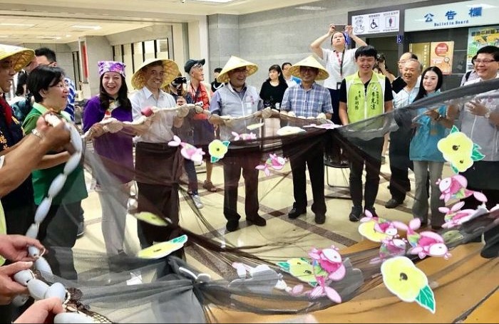 【記者于郁金/桃園報導】「2018海客文化藝術季」今年再度獲客家委員會納入客庄12大節慶之一,將號召千人共同在永安漁港進行牽罟活動,重現新屋沿海地區獨特的海客文化;6月5日記者會上,由桃園市副市長游建華、客家委員會副主委范佐銘、桃園市客家事務局局長蔣絜安、新屋區公所課長廖世凱等,為象徵彩繪漁船的背板點睛,並拉起漁網,象徵漁船順利出航、牽罟成果大豐收。