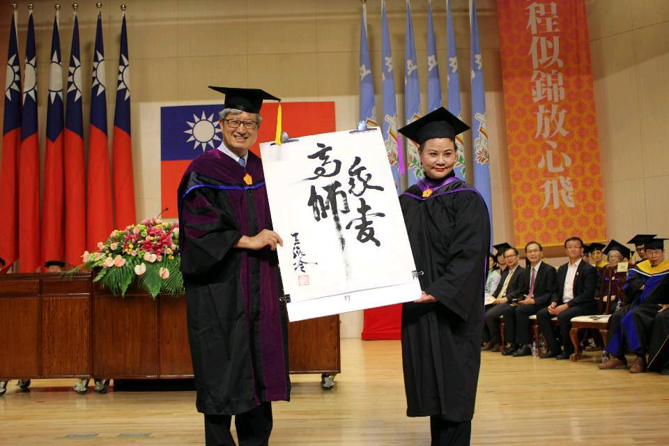 本次畢業典禮有2位表現傑出的畢業生,值得讚賞表揚,其一是國寶級豫劇皇后王海玲,現任臺灣豫劇團藝術總監,可以說成就非凡;曾獲得教育部第1屆民族藝術薪傳獎、美國紐約亞洲傑出藝人獎、豫劇藝術終身成就獎等榮耀,仍然積極進修學習,取得「表演藝術」研究所學位。