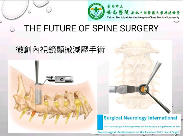 微創脊椎手術與傳統脊椎手術有甚麼不同?程正鑫醫師說,微創脊椎手術與傳統腰脊椎手術的目的是相同,主要都是為了減輕神經的壓迫,維持脊椎穩定,但由於所使用的手術方法不同,因此對患者所造成的傷害有很大的差異;傳統的脊椎手術,傷口約在3-5公分左右,需要把肌肉筋膜整個剝離,分出全部的脊椎骨頭,再執行椎間盤切除或骨釘固定;相反的,微創脊椎手術的目的就是傷口要小,對於組織的破壞要少,所以一般傷口都在3公分以下,利用顯微鏡或內視鏡照明放大下,因為無法看清骨骼的解剖構造,所以需要依靠X光的引導下,先切除部分椎板及韌帶,再進入脊椎管內,撥開神經根,再取出壓迫神經的椎間盤;若脊椎仍有不穩定的問題,需再切數個1公分大小的傷口來植入經皮穿刺的微創骨釘固定脊椎。